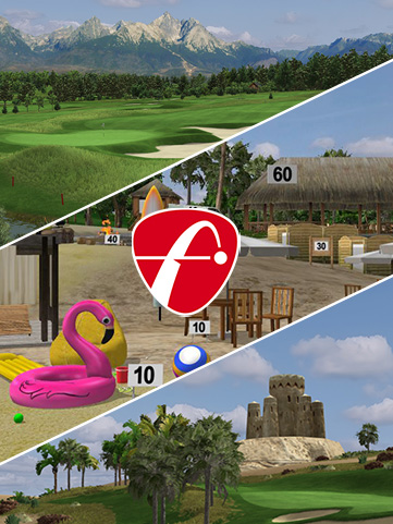 Golfisimo includes entertaining games for children and non-golfers, but also competitive games aimed at improvement of chipping and shot precision, and playing under time pressure.